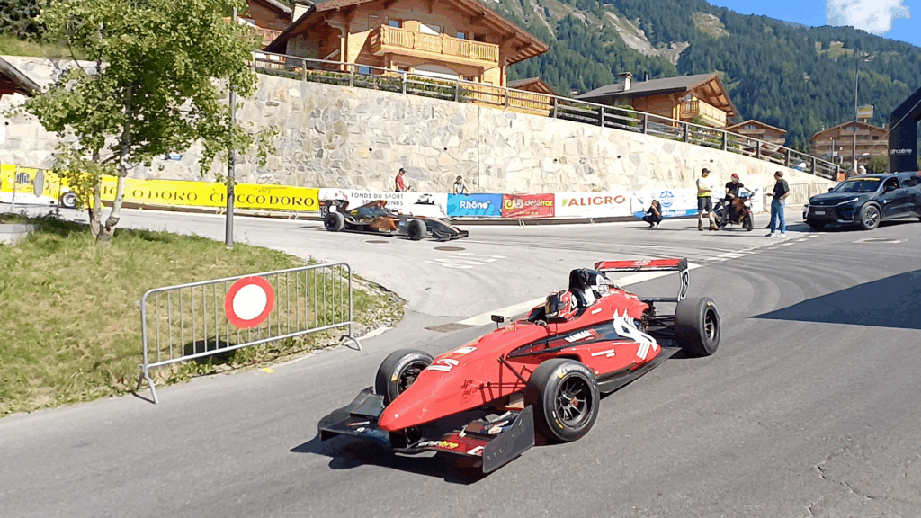 Dans la descente vers Ayent, ces monoplaces filent à toute allure, offrant un spectacle de vitesse et d’agilité. Cette section du parcours met en lumière la dextérité des pilotes qui doivent gérer l’adhérence, la vitesse et les changements de relief avec une extrême vigilance.